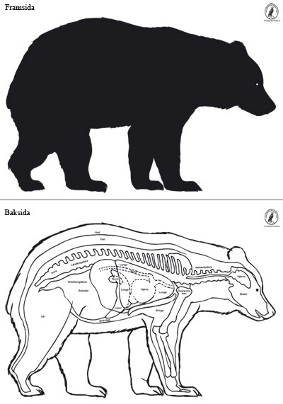 Baksidan visar björnens anatomi. Perfekt för utvärdering av träffars verkan.