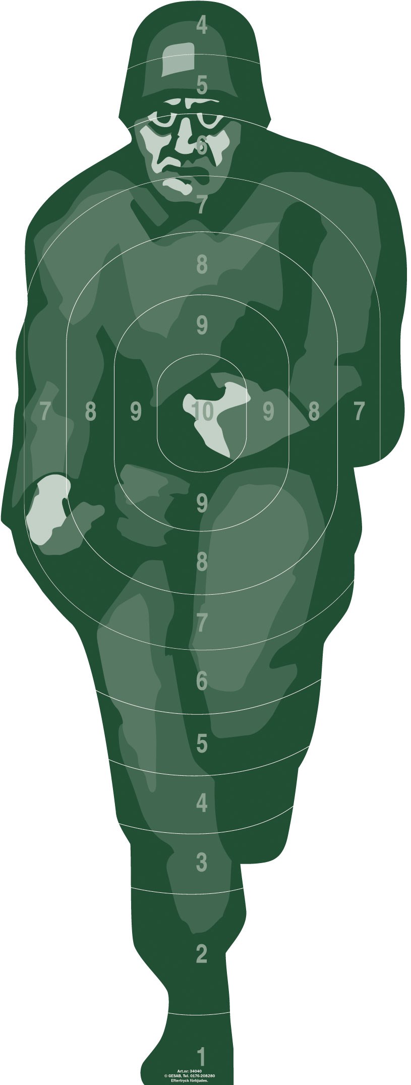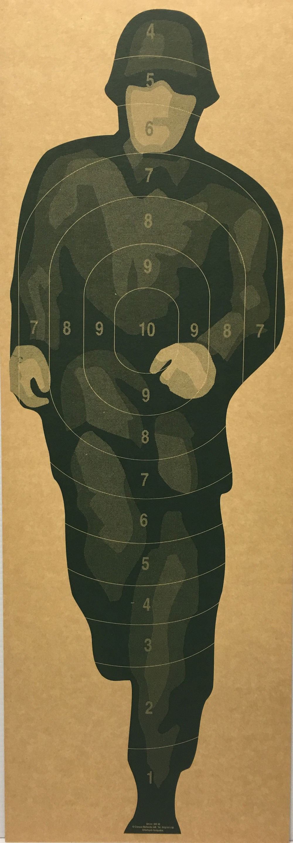 Militär helfigur i miniatyr 10-ringad tryckt på 2mm pappskiva.