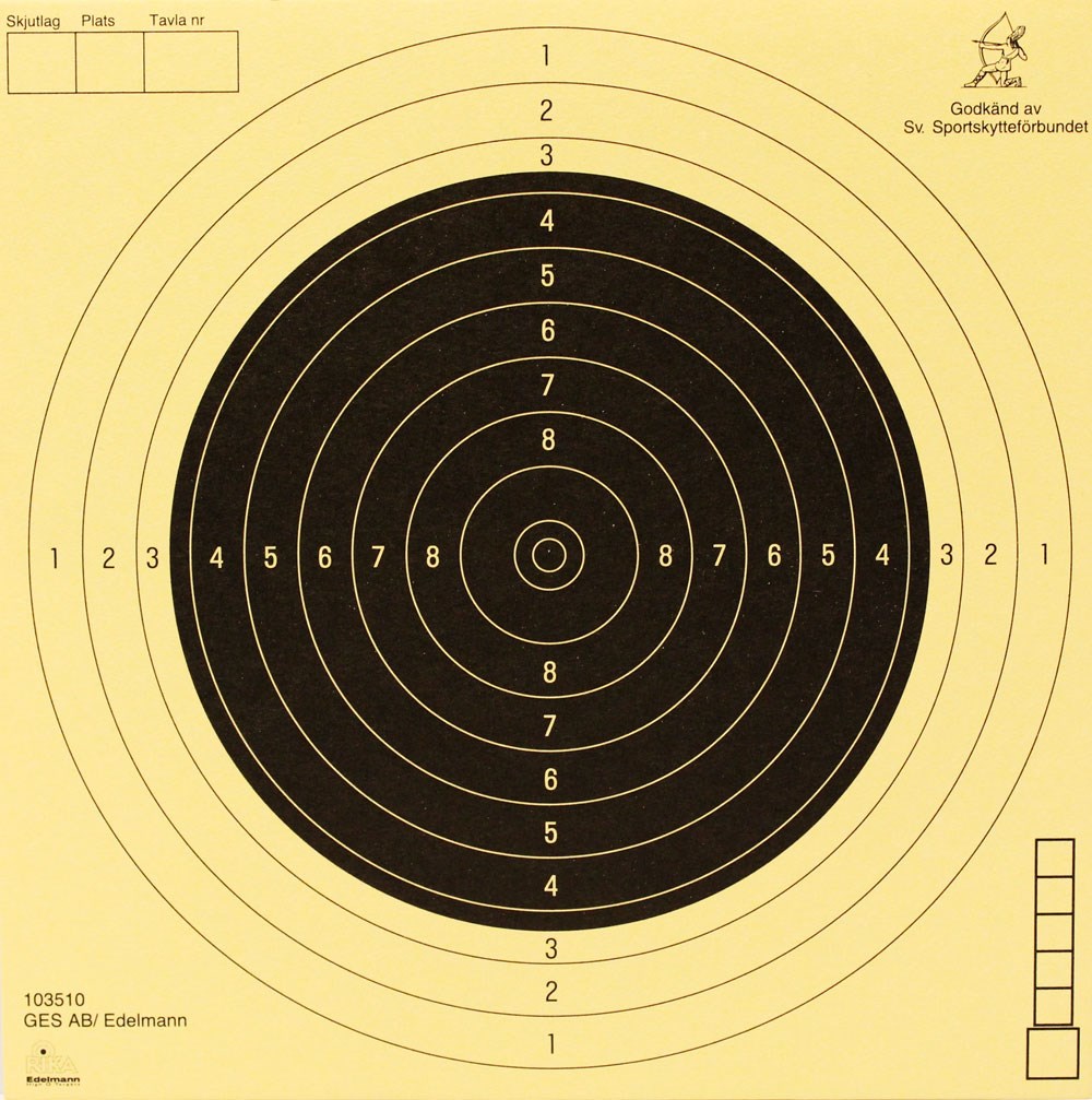 10-ringad. Godkänd av ISSF, SSF och FSR.