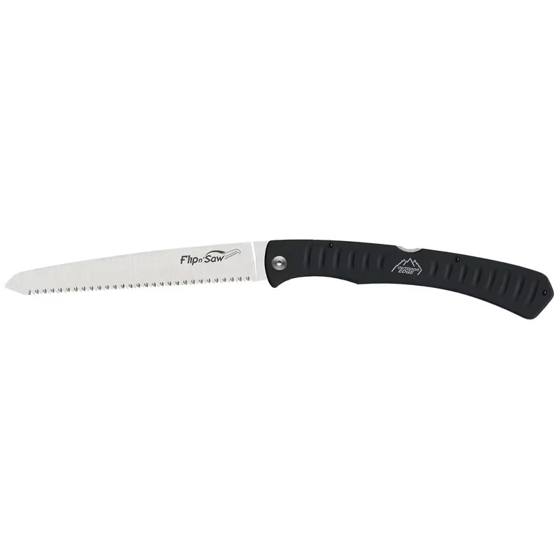 Denna kompakta hopfällbara såg har ett 18 cm långt  65Mn fjäderstålblad med ett tredubbel slipande tandmönster för en aggressiv skärkant för att tränga igenom tufft ben och trä.