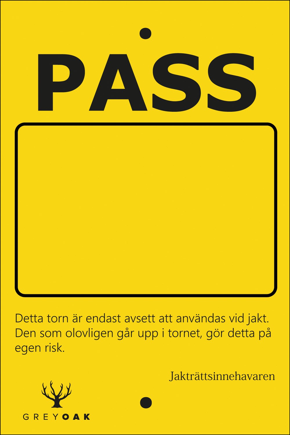Varningsskylt och skylt för märkning av pass.