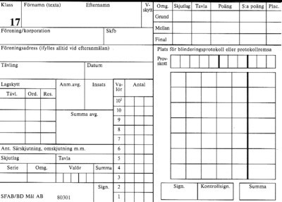Skjutkort för banskjutning gevär.