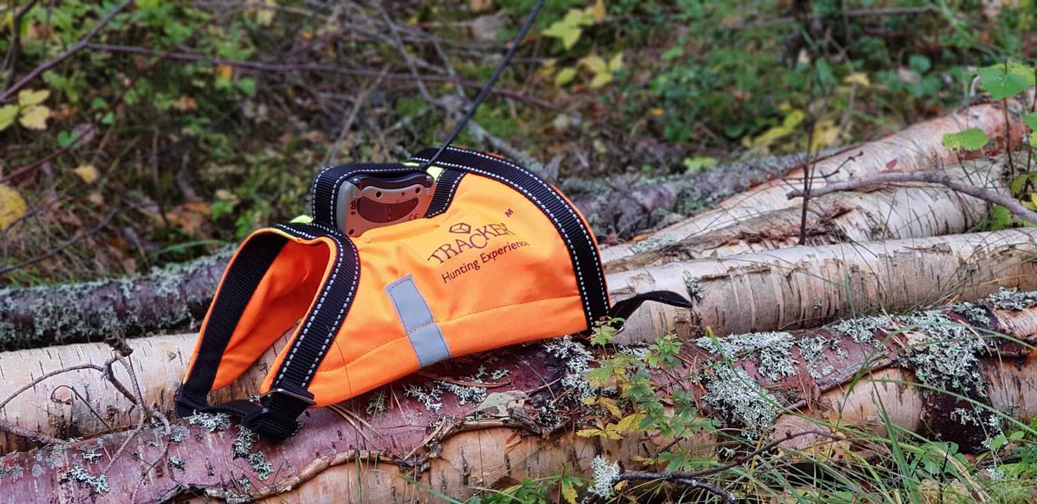 En del jägare föredrar att låta hunden jaga med väst, i stället för att ha sändaren runt halsen. Tracker Hundväst är specialtillverkad, sändaren fästes på ryggen genom att lossa skruvarna på sändarens ovansida och skruva fast dem på motvarande sätt på bandet ovanpå västen. Var noga med att antennen inte kommer fel, det kan du se genom att passformen mellan sändarklumpen och locket till sändaren skall passa tätt ihop.