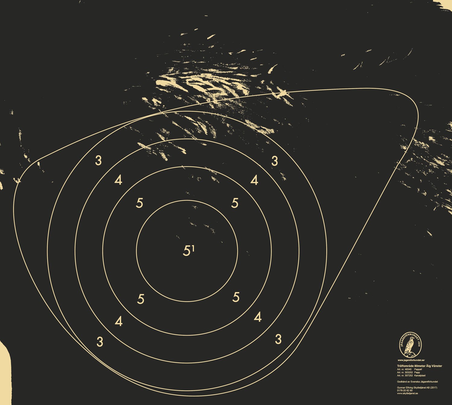 Träffområde på papp till löpande älg 80 meter.