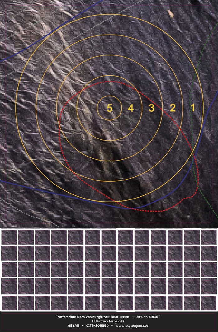 Träffområde och klisterlappar till Björn vänster Real-serien.