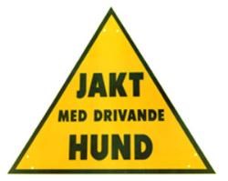 Varningsskylt, jakt med drivande hund.